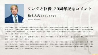 嫌儲 『ワンダと巨像』松本人志が20周年の記念コメントを送る。『人喰いの大鷲トリコ』は娘とプレイ