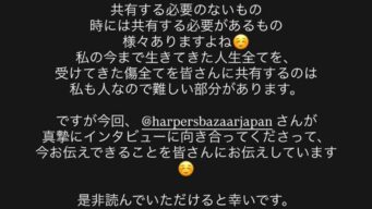 芸スポ 女優の三吉彩花、タトゥー公開でコメント「想像以上の反響に驚いています」「「受けてきた傷全てを皆さんに共有するのは難しい」