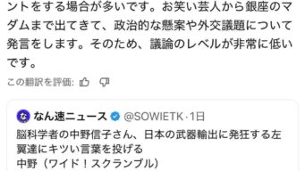 嫌儲 女優のキムラ緑子さん、殺傷能力武器輸出解禁に「日本もただのダメな国になりました 残念です」