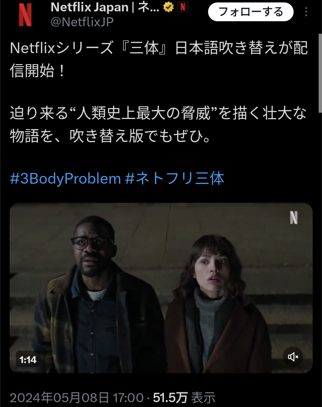Netflixドラマ「三体」に日本語吹き替えが追加ァ!!!!