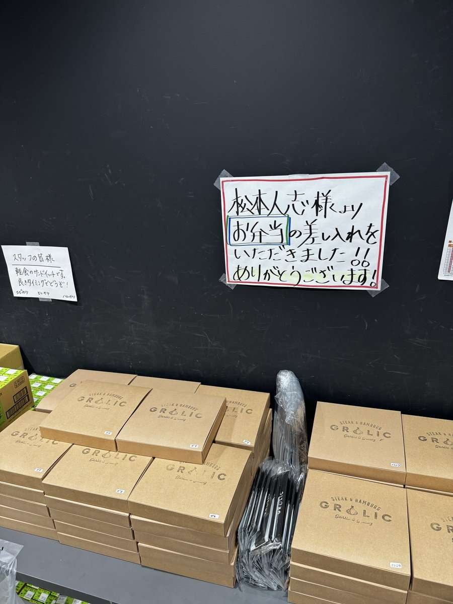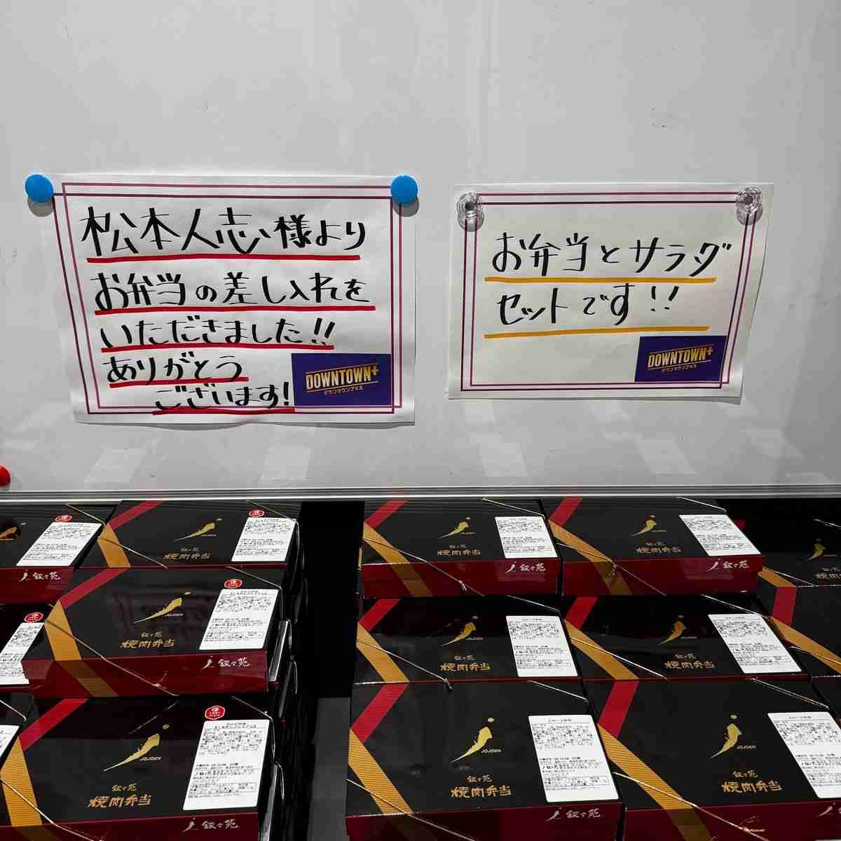 松本さんから差入れを頂きました🍱生配信(#ライブプラス)の時間も近づき、徐々にスタッフも慌ただしくなってきています💦