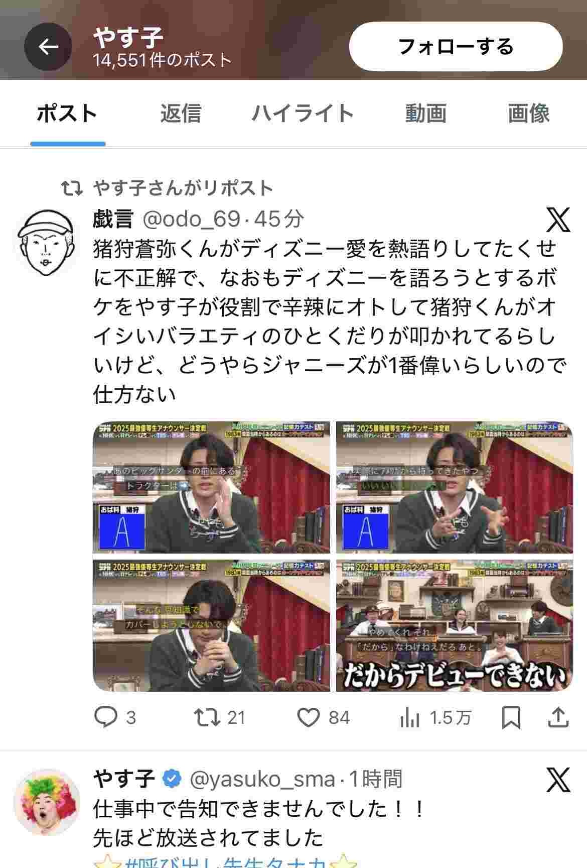 - やす子がジャニオタ叩きのポストをリポストして余計炎上