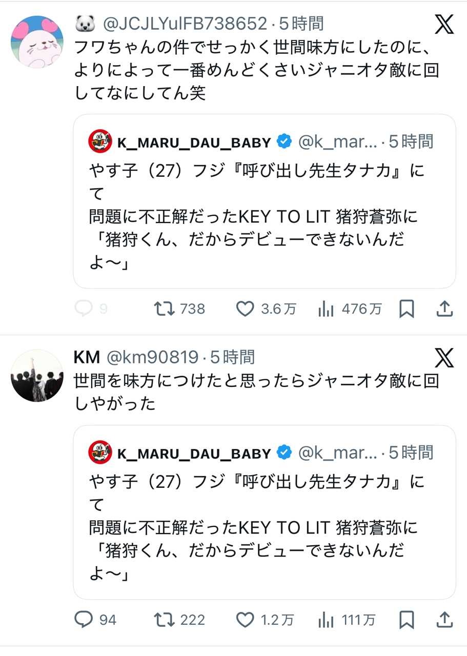 - 長年燻ってるジャニーズjrに向かって「だからデビューできないんだよ」と弄って大炎上