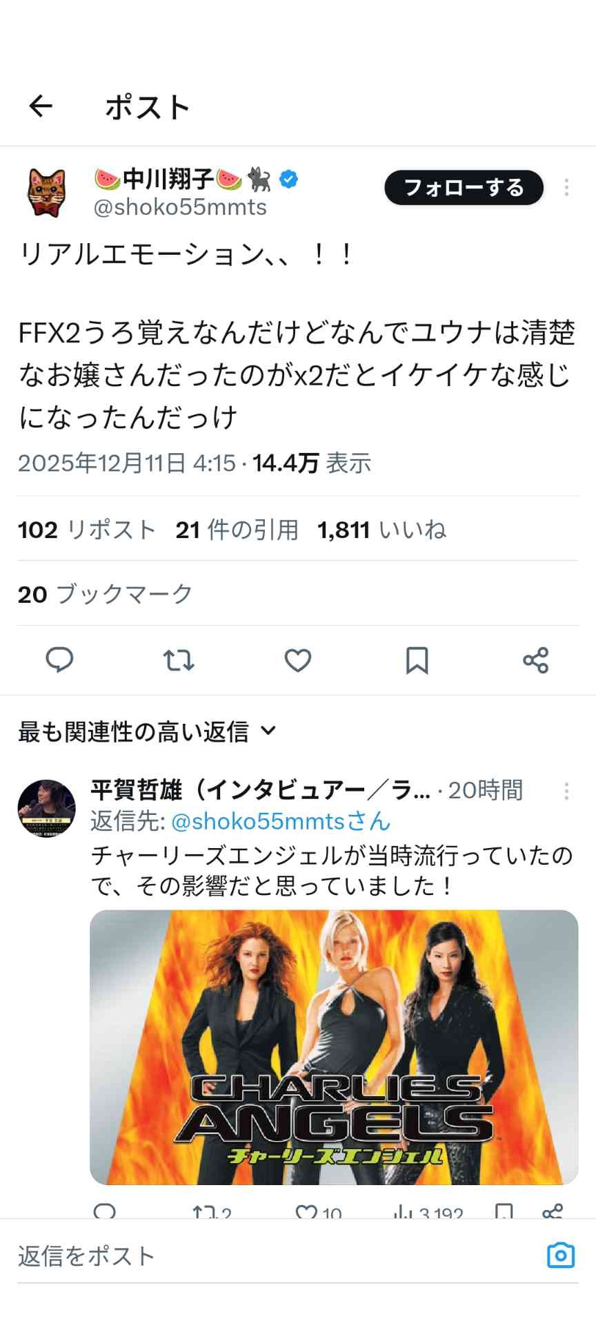 中川翔子「ユウナってなんでFFX2であんなんになったんだっけ」