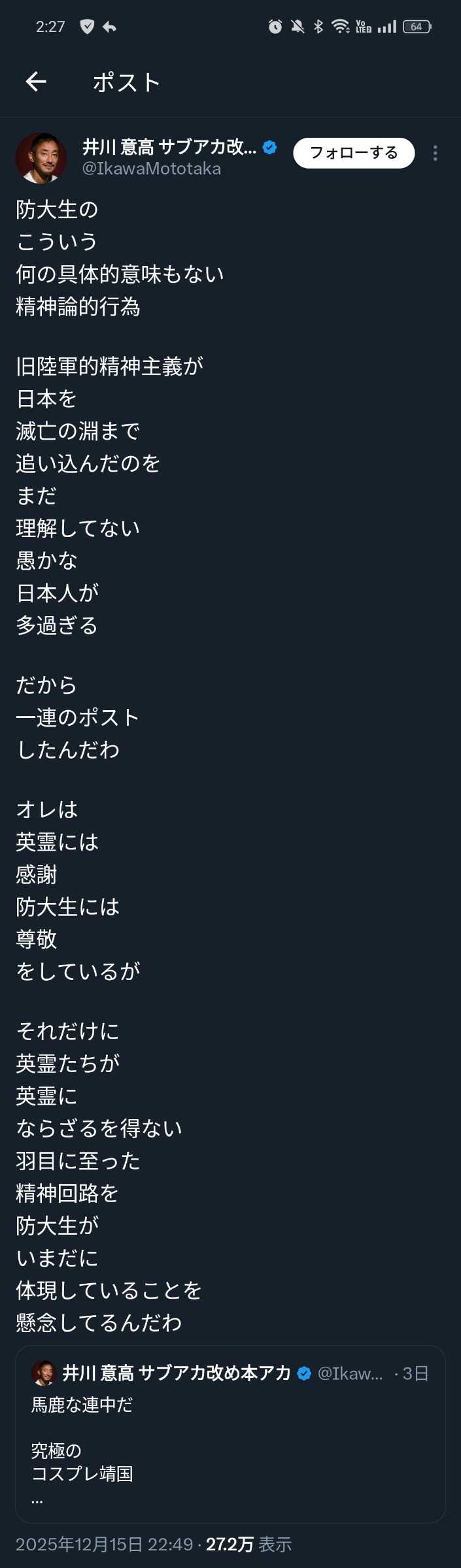 だからよく分からんのよなこいつの思想 - 14 : 2025/12/18(木) 02:38:15.863 ID:Bj1/it82T