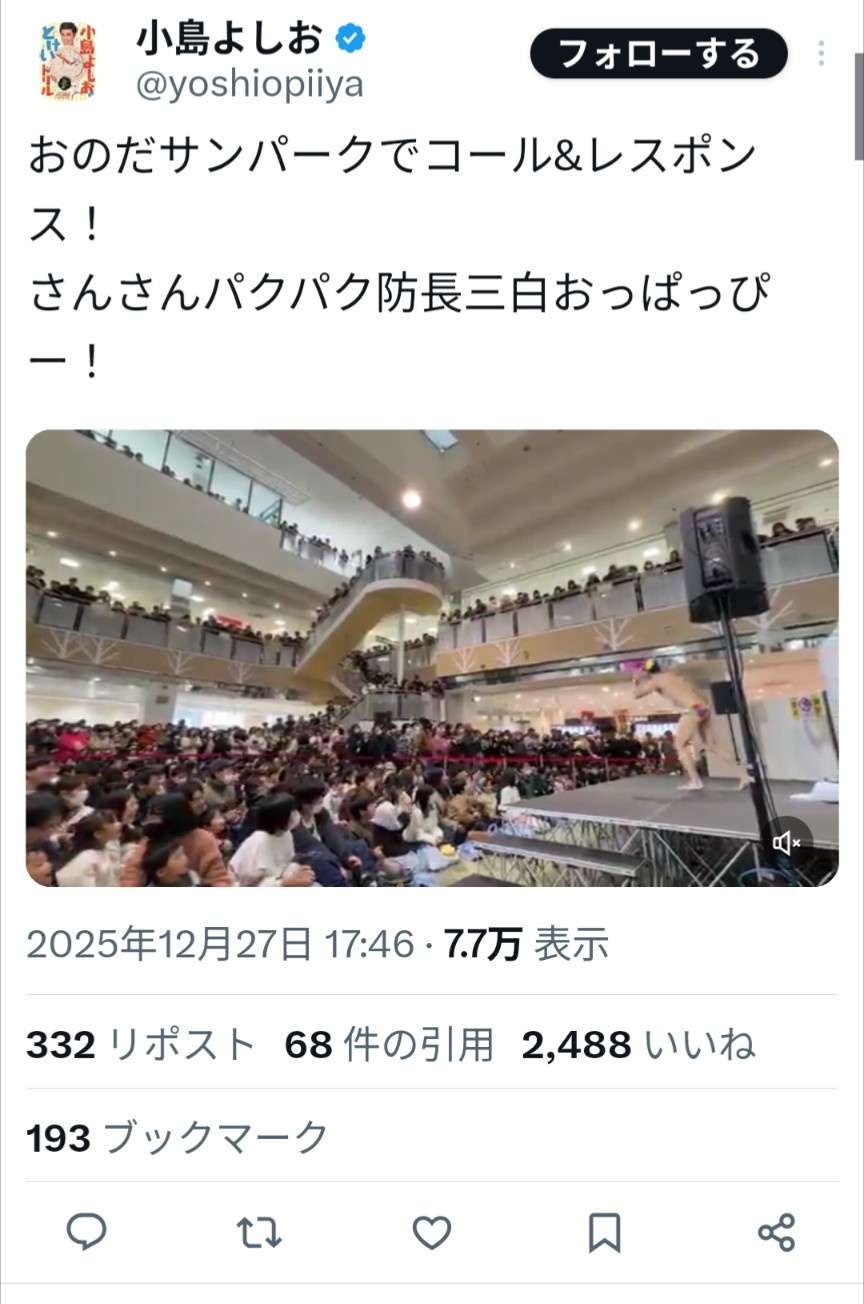 - 実際近所のイオンモールとかららぽーとに小島よしお来るなら別に買い物関係なく行きたくなるよな