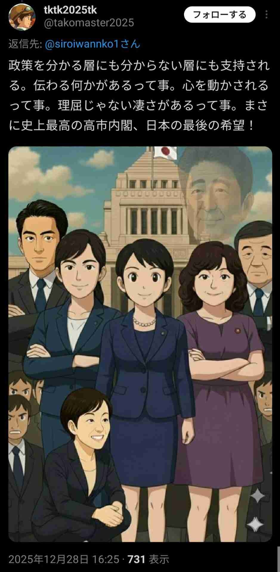 見た目がいい、既存政権を上げられる、コメントに具体性が無く逆に粗が出ない - 42 : 2025/12/29(月) 07:37:07.110 ID:POTxPlK67