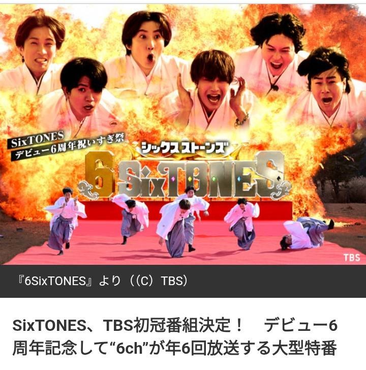 SixTONES、TBSで初冠番組決定! デビュー6周年記念して”6ch”が年6回放送する大型特番