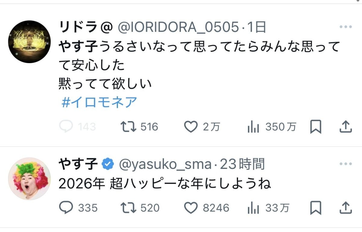 https://x.com/yasuko_sma/status/2006257586946072977 - 2 : 2025/12/31(水) 17:24:21.848 ID:ta7LzR3XY
