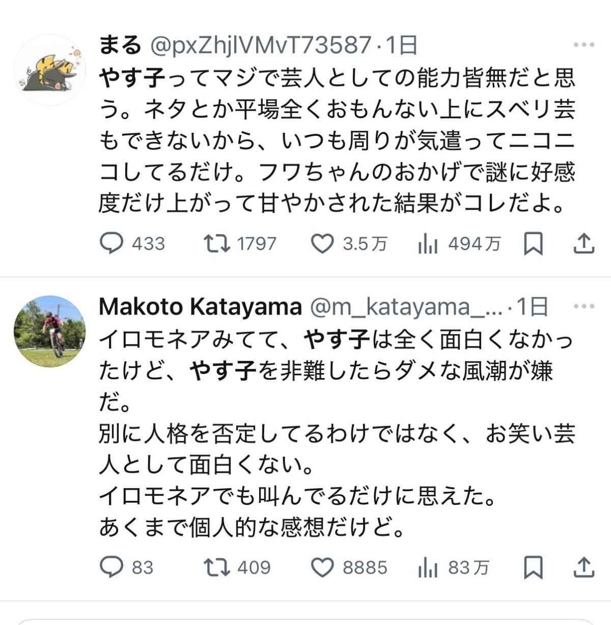 - やす子がバラドルに対して「○○ちゃんアイドルだったの?売れないグラドル上がりかと思ってたw」とか言ったのはなんか空回りしてんなと思った