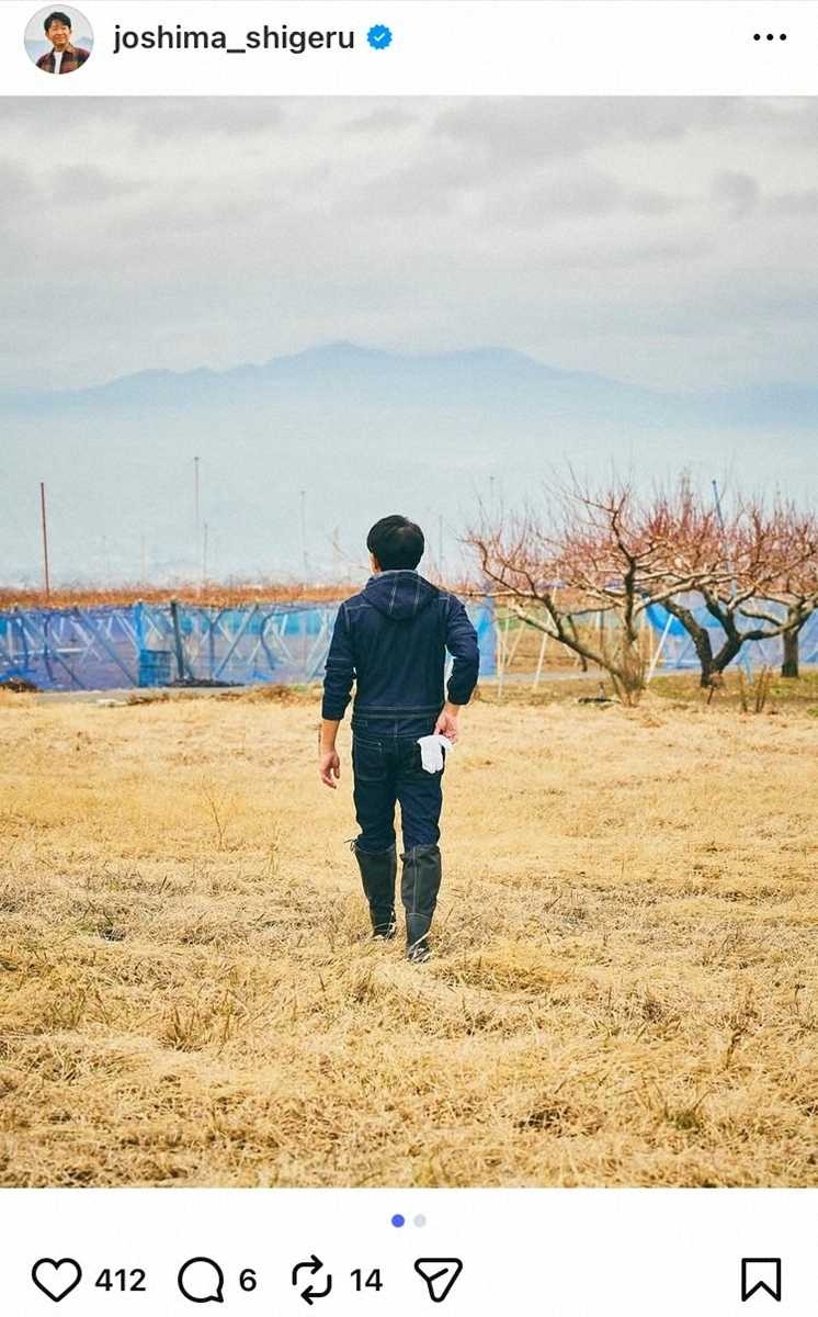 作業着を着た後ろ姿の写真を投稿し「新たな思いで、新たな時を。food hood who’d 城島 茂」と思いをつづった。