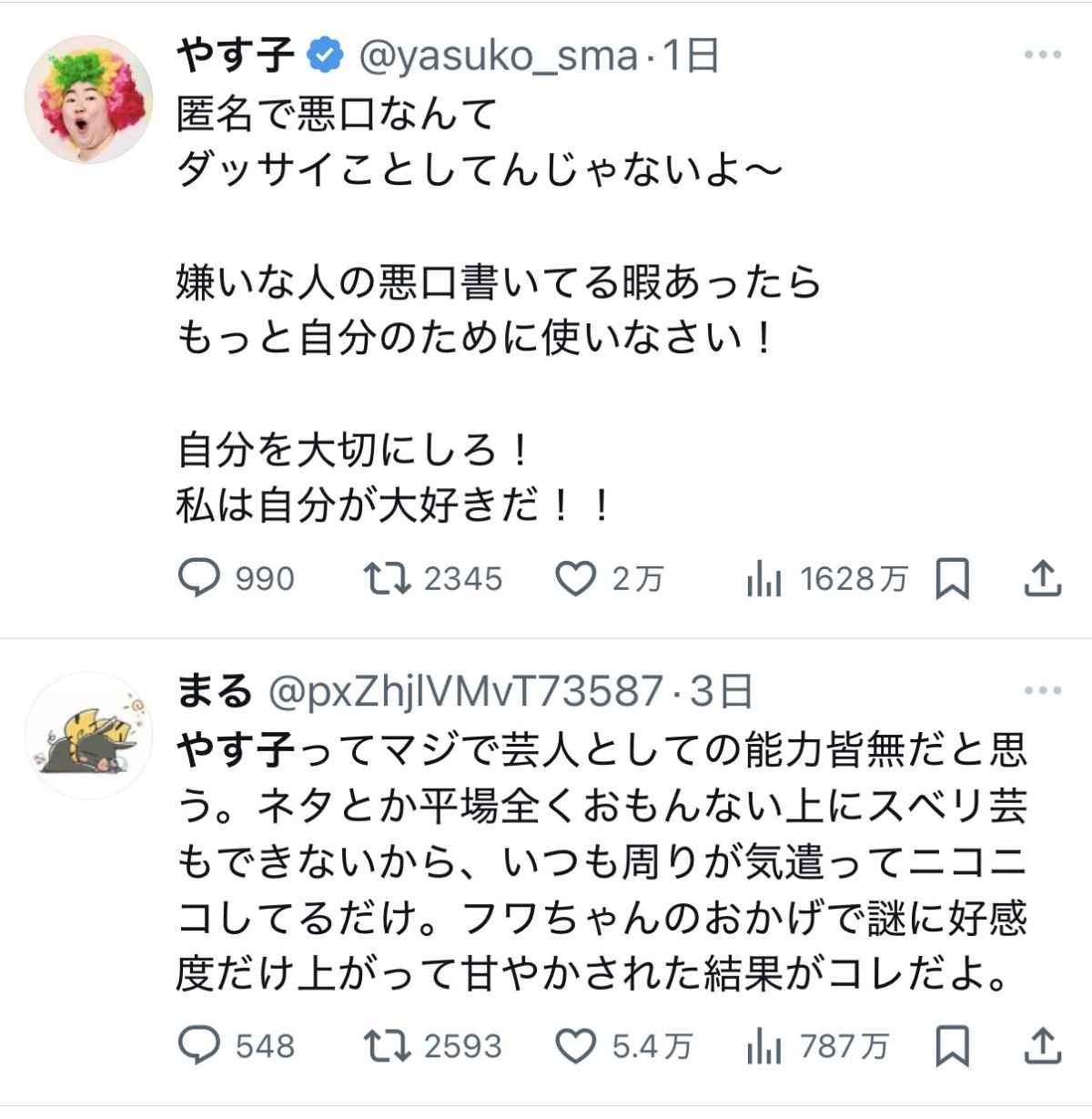 フワカスはちょっと同情してまうがやすこが干されたらずっと笑える自信あるわ