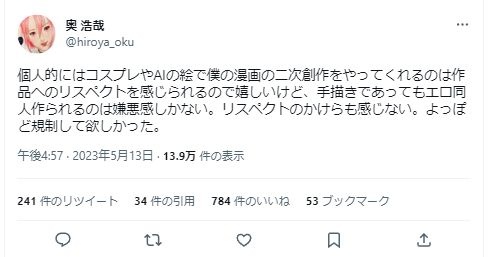 漫画家がアイドルのAIディープフェイク作って炎上してるけど…奥浩哉先生も2年前に似た様な事してたの忘れてないからね。
