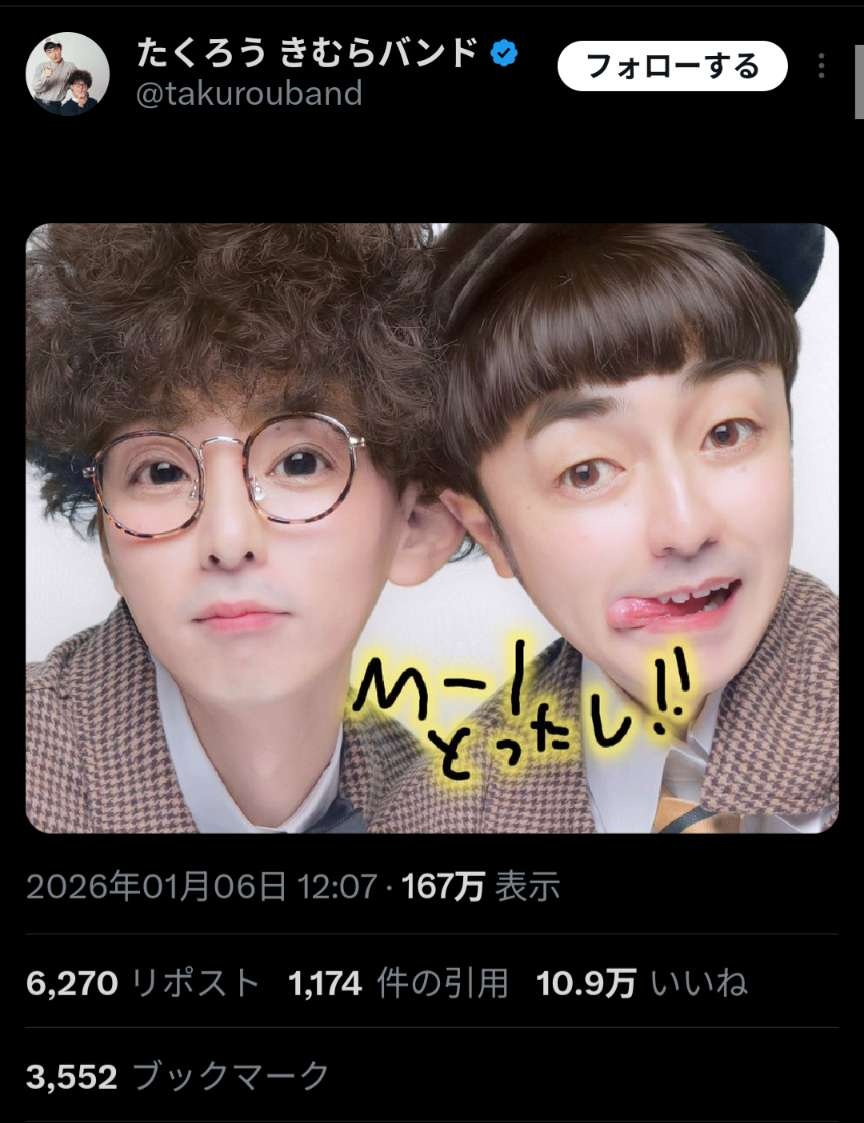 M-1優勝コンビたくろう、プリクラ写真を投稿してしまうwww