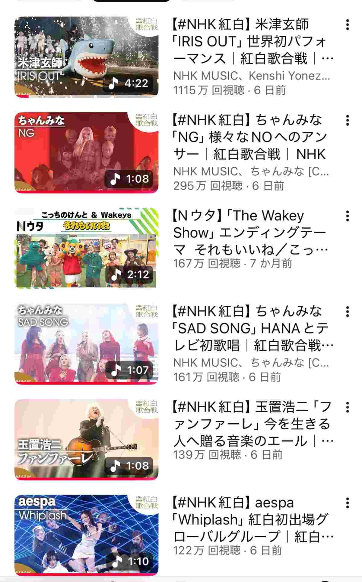 紅白の歌手別再生数ランキングwww