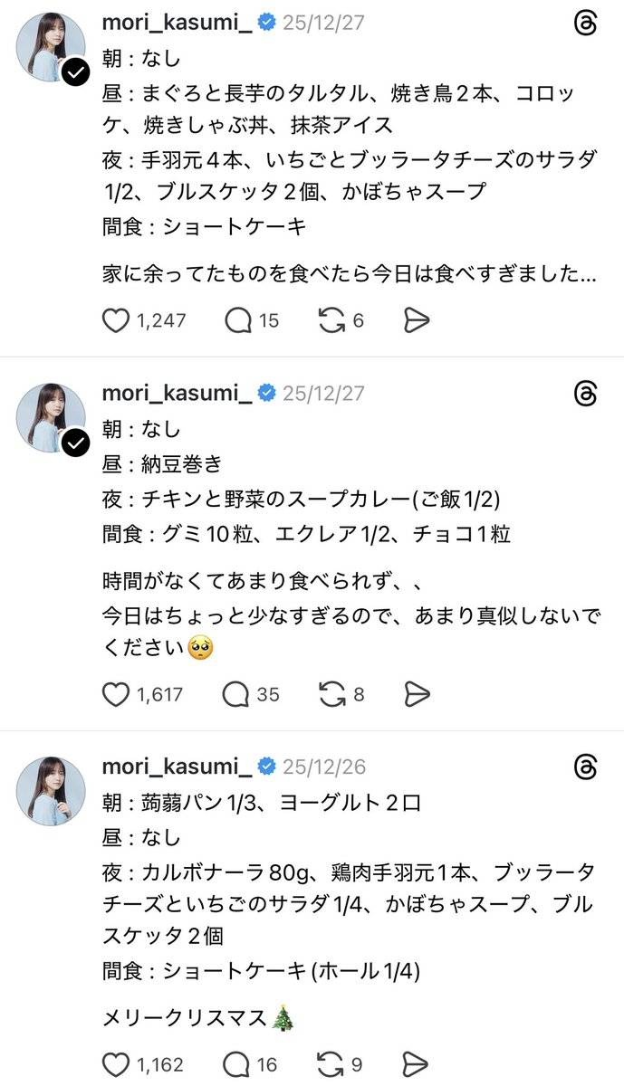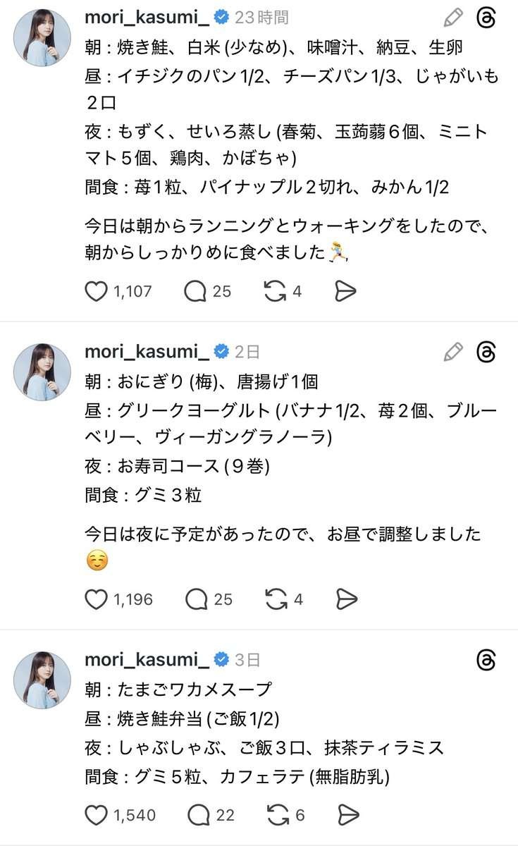 森香澄さん、毎日の食事内容をSNSにアップしてしまう…