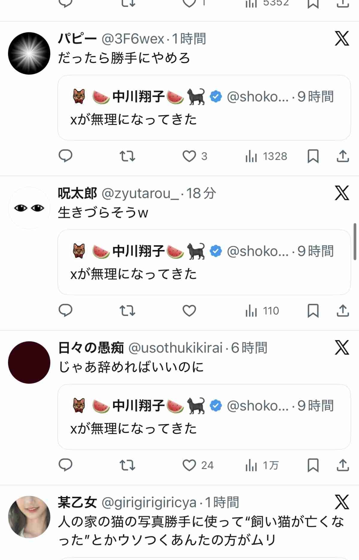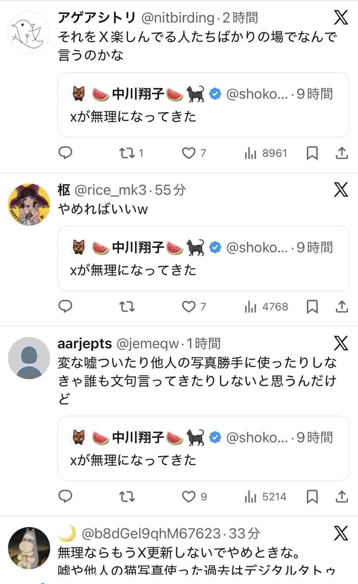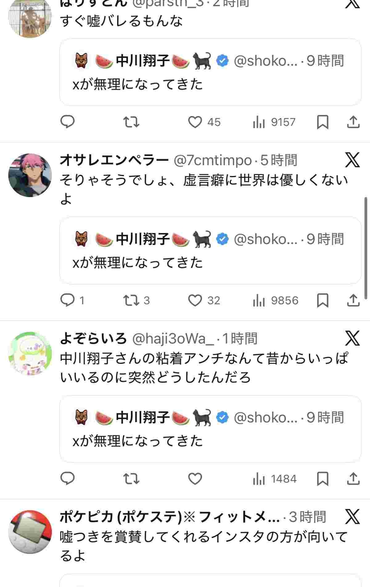 中川翔子さん(40)「Xが無理になって来た」←炎上www
