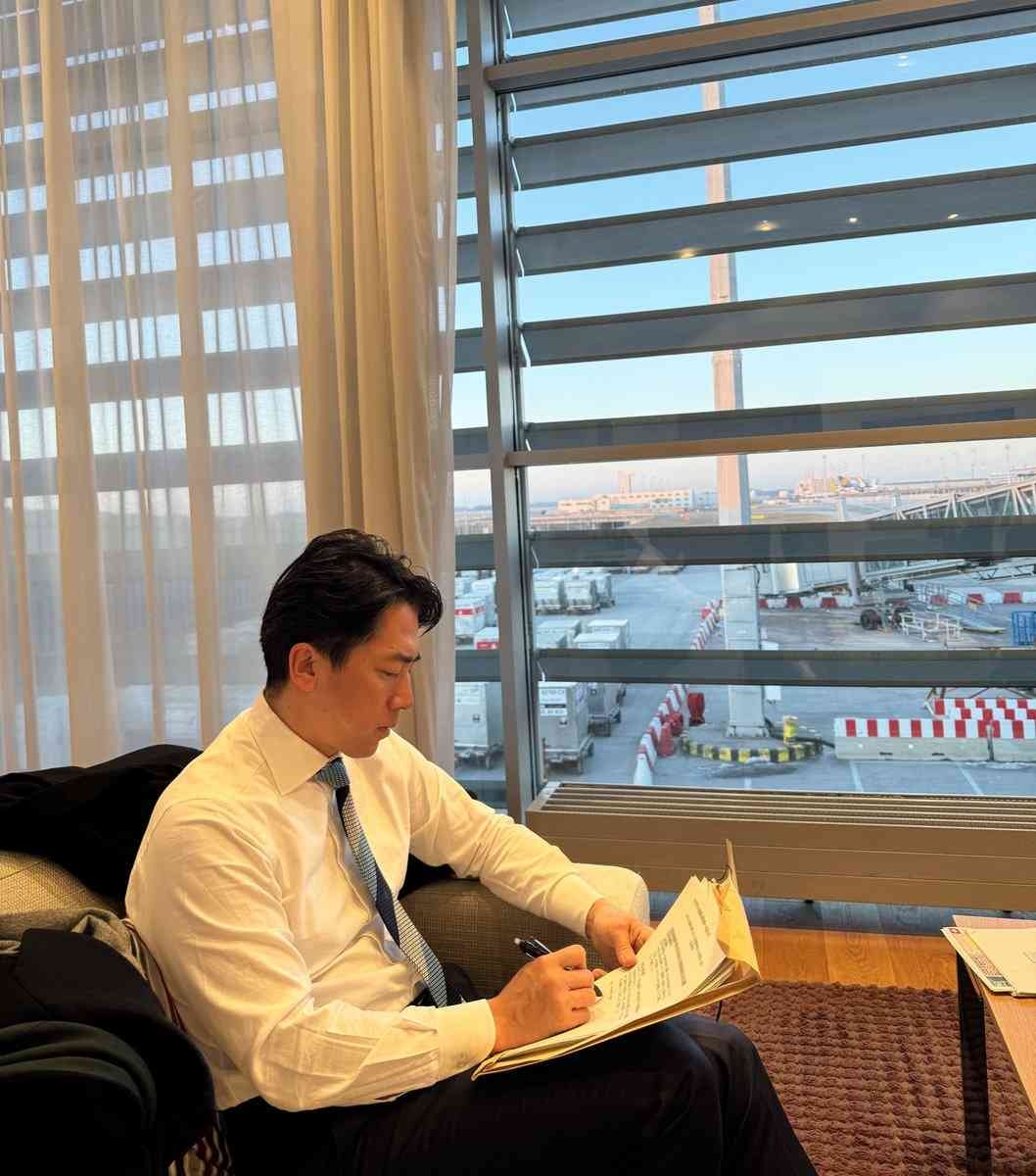 小泉氏は20日に「米国出張から帰国し、今はドイツのミュンヘン空港です。乗り換え待機中に選挙準備を進めています」と近況を報告し、白シャツ姿で書類を見る自身の写真を公開していた。続く投稿では、