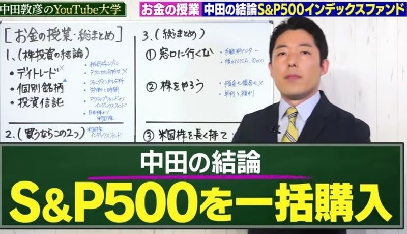 - 中田「必ずブラックロックかバンガード関連のものを買ってください」