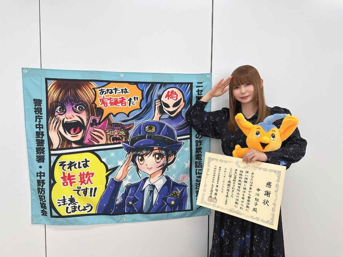中川翔子「わたしの詐欺防止啓発ポスターで警察署から感謝状をいただきました」