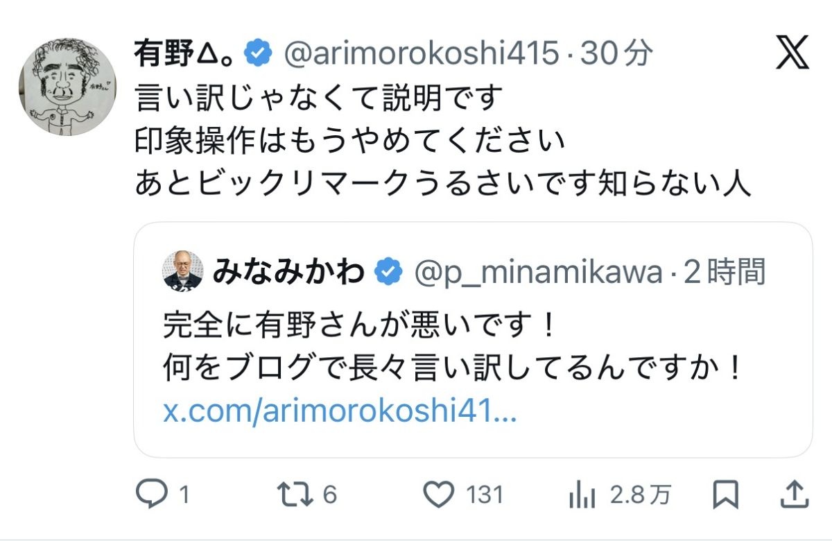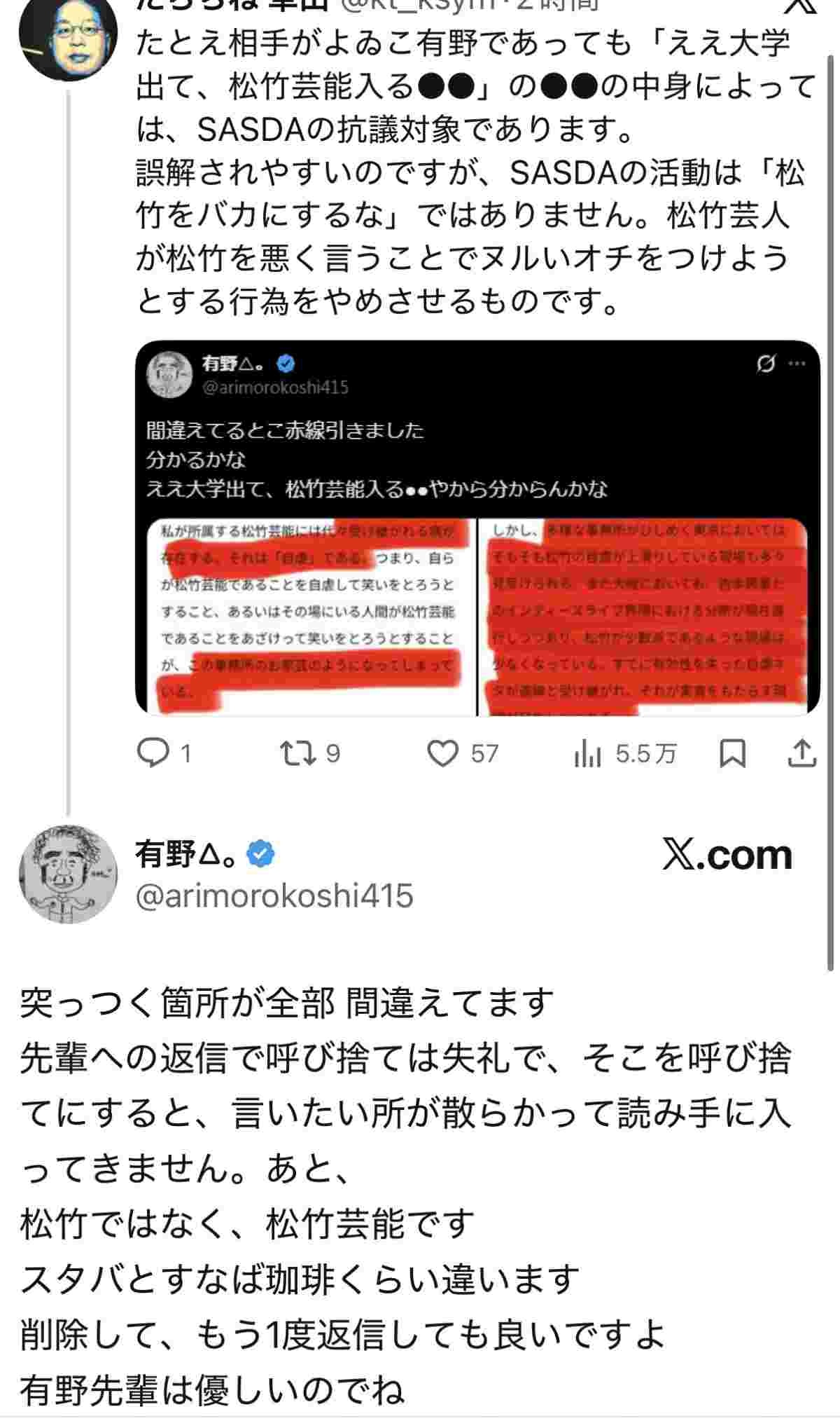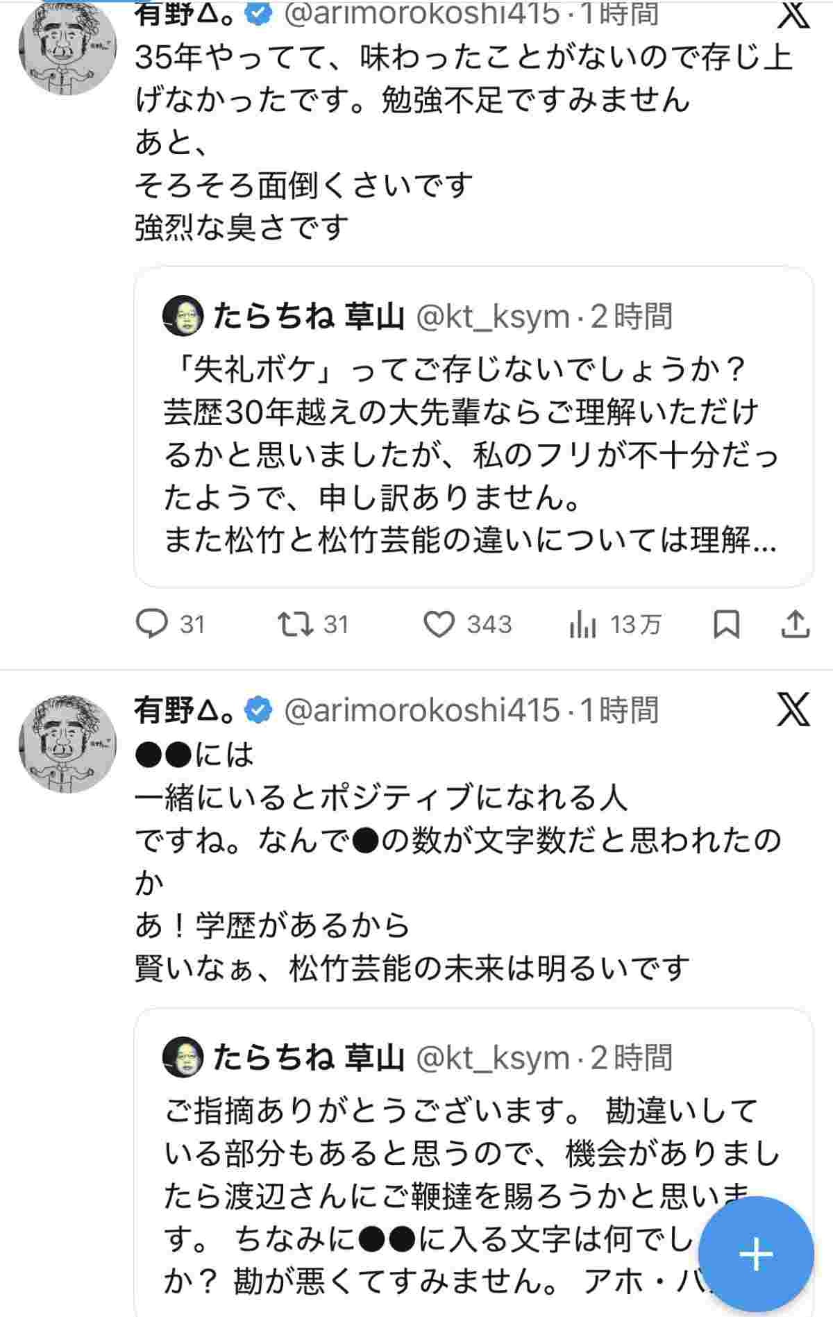 若手松竹芸人とレスバし敗北したよゐこ有野さん、ブログで後釣り宣言www