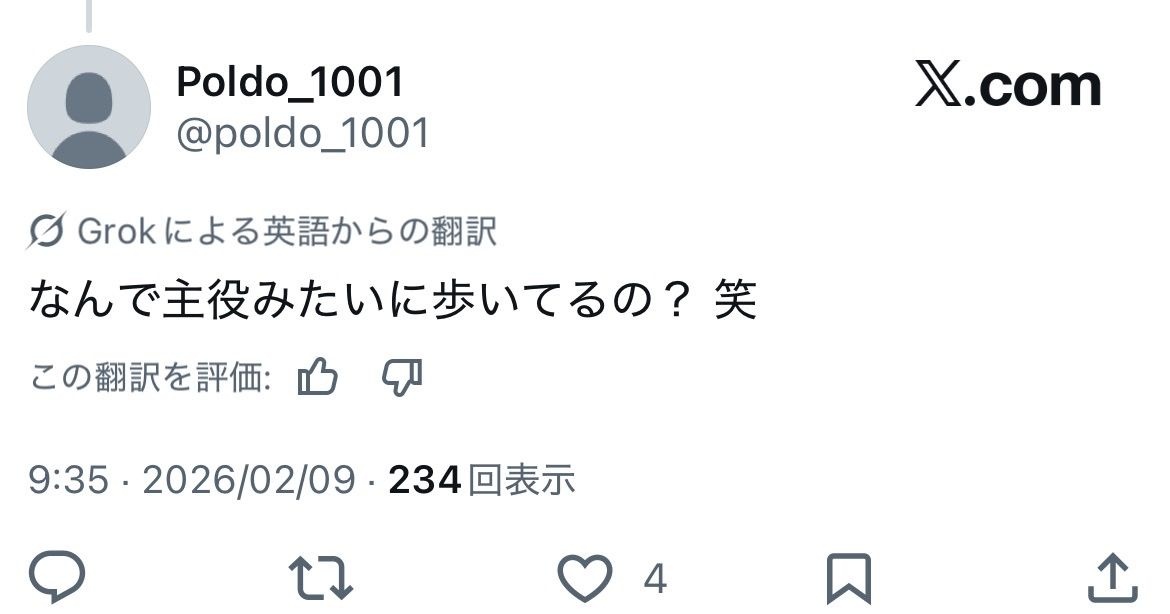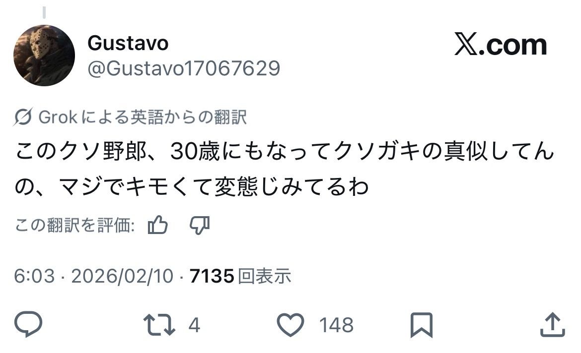 - grokの翻訳っていかにも底意地の悪いネット民みたいな文体の翻訳するよな