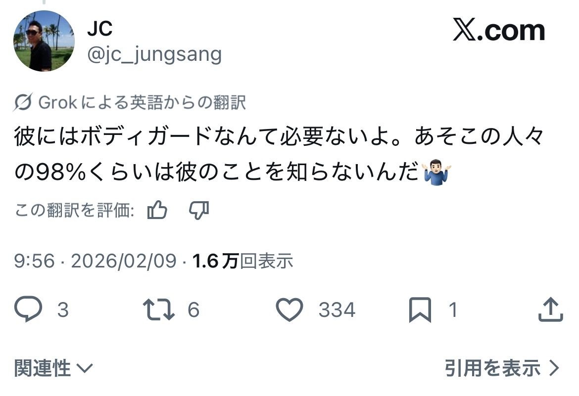 日本でも誰こいつ?ってみんななると思う - 22 : 2026/02/10(火) 16:49:37.353 ID:Wea5E9Li3