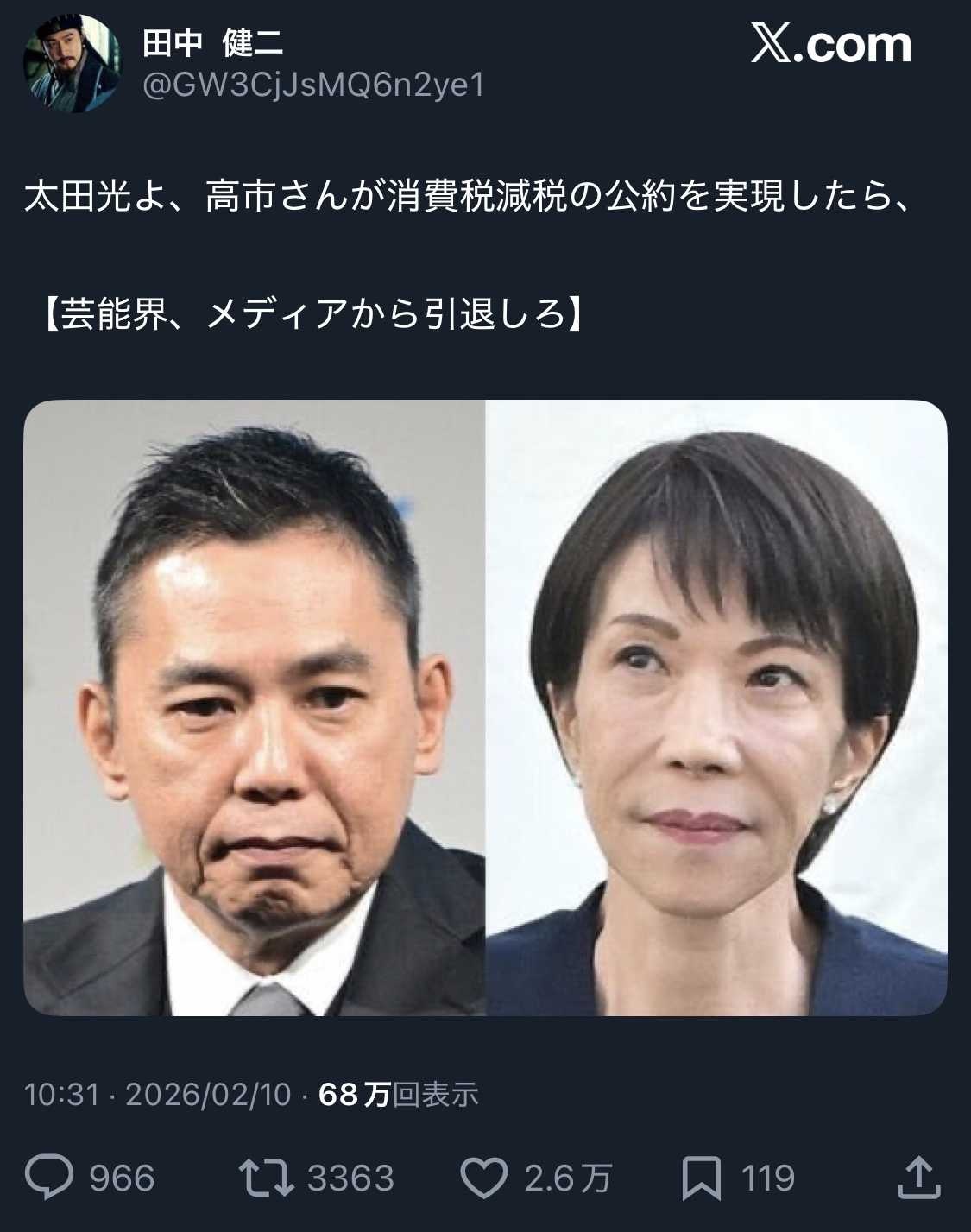 ネトウヨが太田を叩けば叩くほど実行されるわけがない消費税減税が断念ってなった時高市にダメージいくのわかっとんのかな