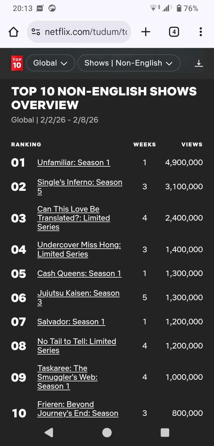 多少「ヒット」した程度じゃランキングからすぐ消えるからなネトフリやと - 27 : 2026/02/15(日) 20:02:03.710 ID:c9FhbmbPf
