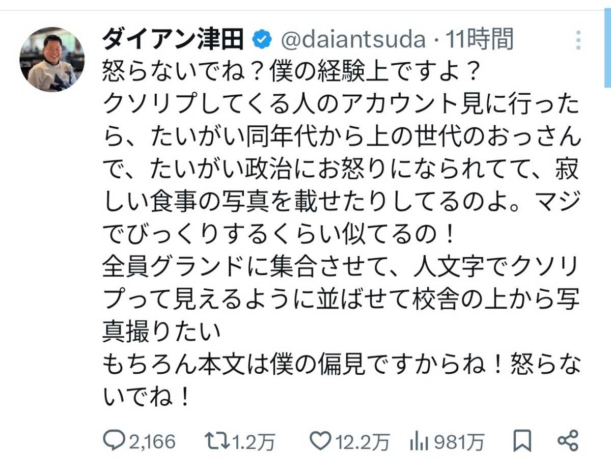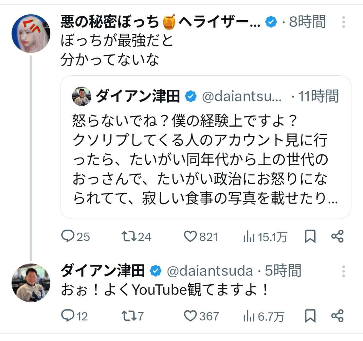 - 津田みたいなイメージ良い奴が弱男煽るのそんなメリットない気がするな
