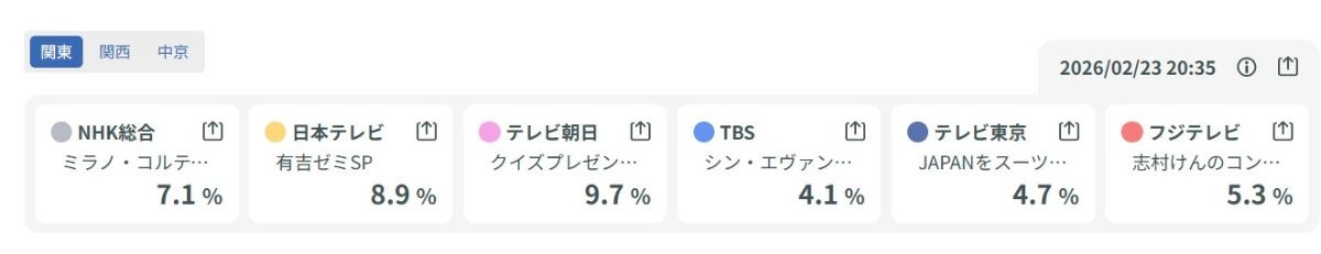 他のチャンネルの数字も出てるだろ… - 40 : 2026/02/23(月) 21:27:18.59 ID:Md1Jpuo50
