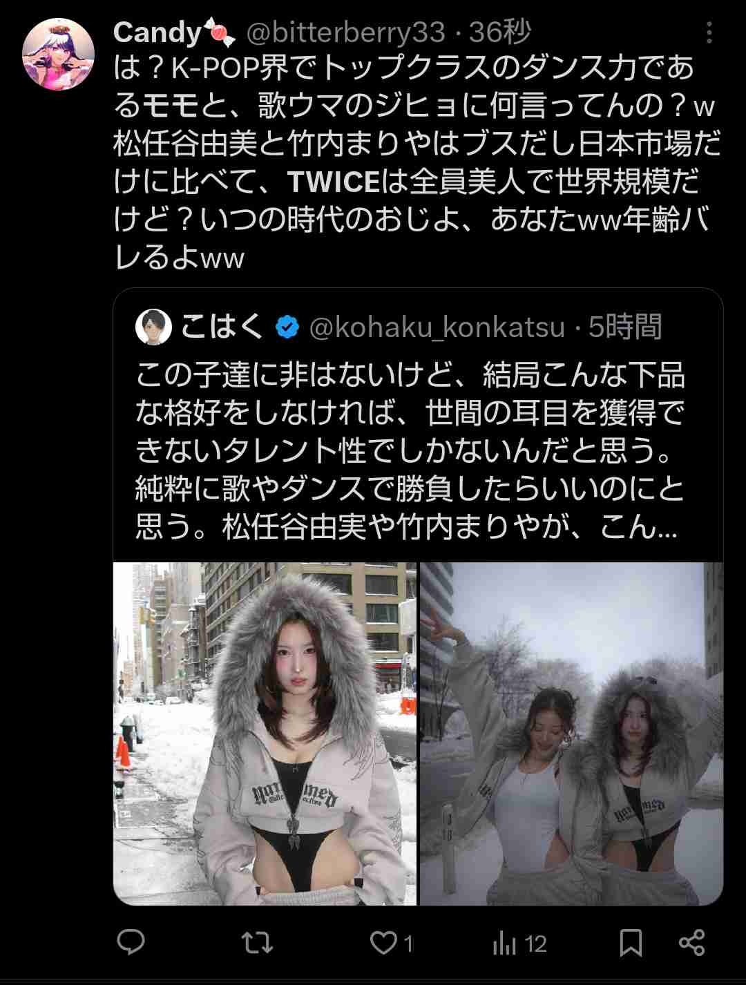 TWICEさん、極寒のNYであたシコダンスを披露し炎上して終わる…【画像】