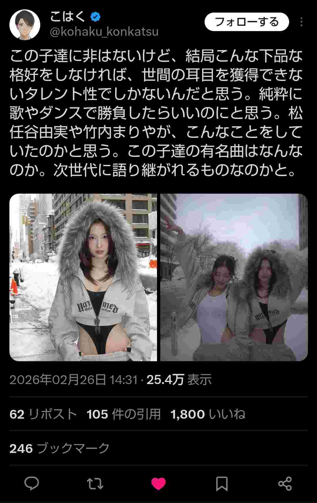 - 韓国アイドルがやったら自己表現で日本アイドルがやったら性的搾取っていわれるのまじで謎
