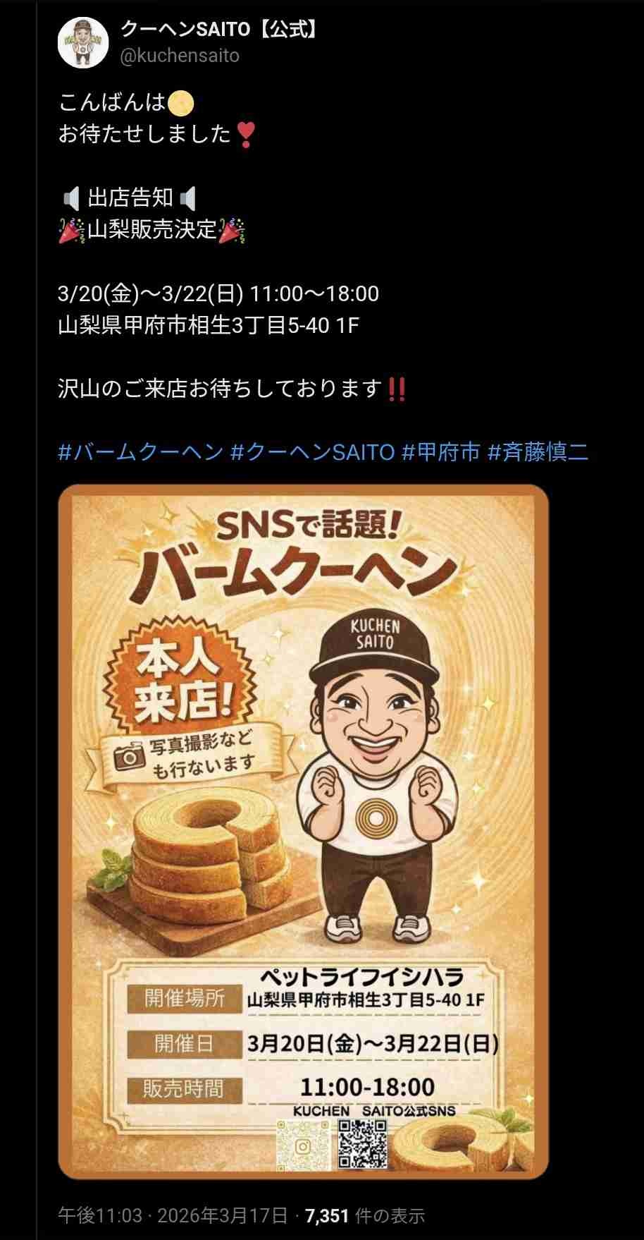 みなみかわのラジオで斉藤のバームクーヘン販売をリスナーがルポしてたけど記念写真と引き換えに1ホール3000円で買わせたりしてたらしい