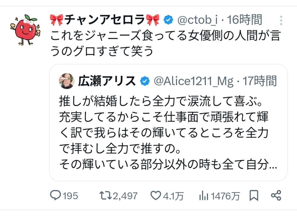 これで発狂するのジャニマンだけやろ - 72 : 2026/03/23(月) 14:13:37.488 ID:vysqXeek0