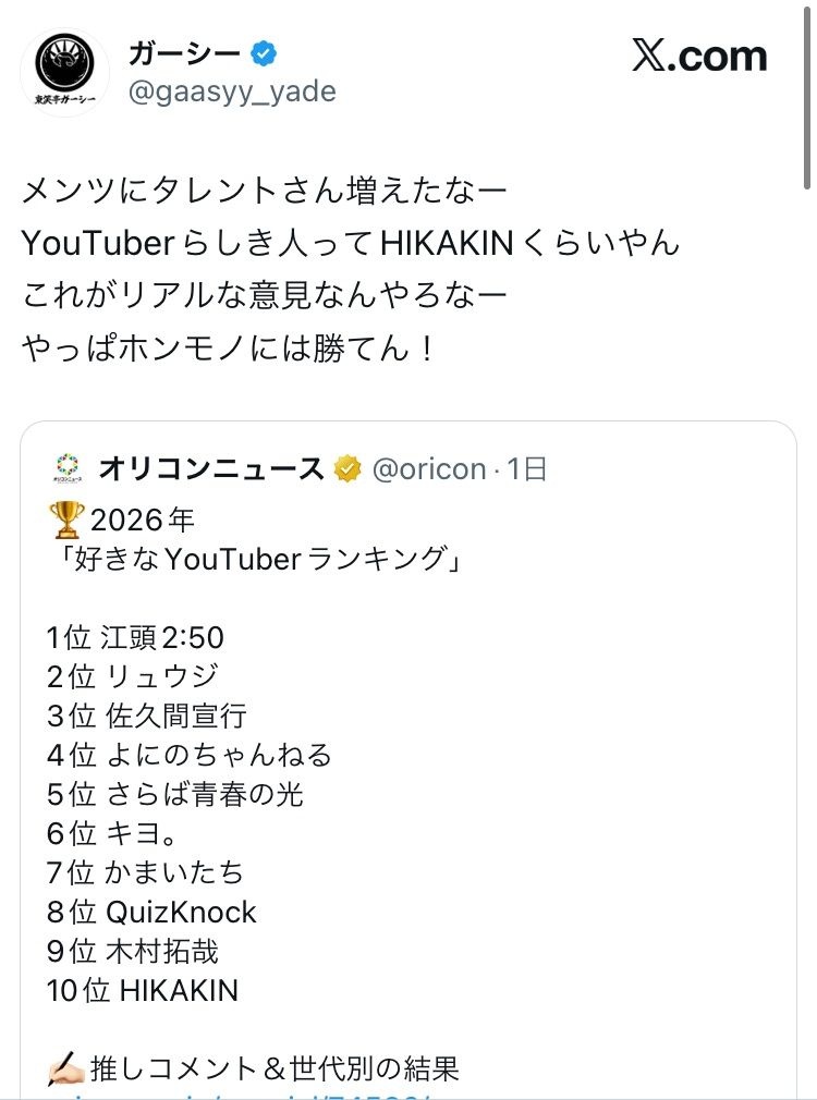 コムドットやらホロライブやらが入らん訳ないと思うわ - 17 : 2026/03/31(火) 21:24:49.39 ID:HPsBFNt30