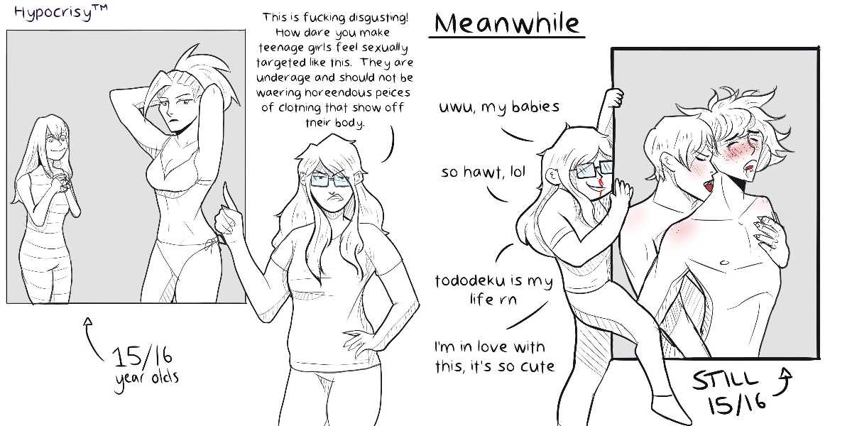この当時のTwitterにあげたイラストが海外フェミにボロクソに叩かれてたらしくそいつらのアカウントを英語圏のオタクが掘ったらヒロアカでBLやってる海外腐女子がたくさんおってこんな風刺画つくられたとか