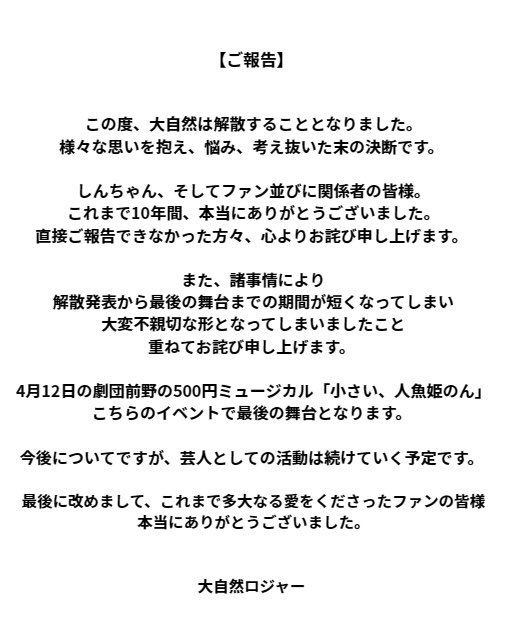 性格いいロジャーから切り出したとは思えんからしんちゃんが知名度のギャップに耐えられなかったか芸人辞めたかったかどっちかやろ
