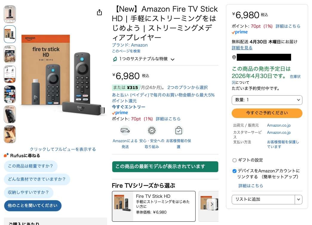 Amazonの「Fire TV Stick HD」生まれ変わって4月30日発売