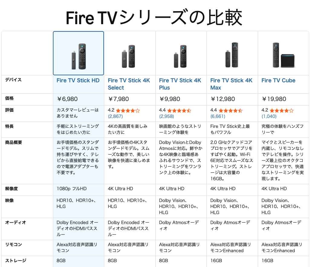 - なおあと1000円出せばire TV Stick 4K Selectが買える模様