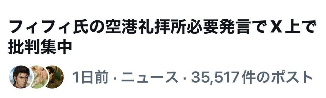 エジプト出身の帰化日本人フィフィ氏(49)は4月17日頃の配信で、国際空港やショッピングモールに多目的祈祷室を提案し、世界の空港では当たり前だと述べました。これに対し、X上で「日本人ヘイト」「押しつけ」との批判が相次ぎ、埼玉県戸田市議の河合ゆうすけ氏らも反発。背景には日本でのイスラム教徒対応をめぐる火葬やモスク建設の議...