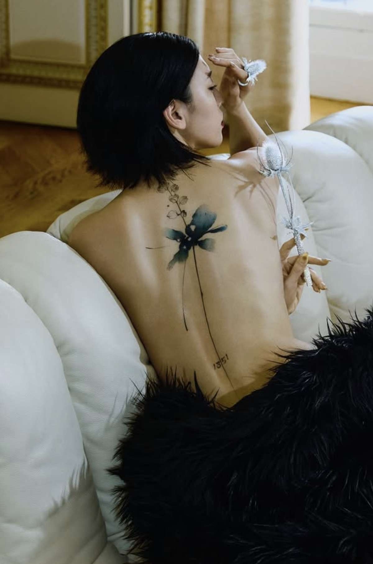 同日に『ハーパーズ バザー』の公式サイトには三吉のインタビューも掲載された。それによると、三吉はタトゥーを入れるにあたり、所属事務所とは2〜3年かけて話し合ったという。タトゥーのモチーフは、自身の誕生花であるタチアオイだということだ。