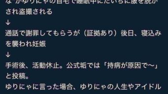 嫌儲 インフルエンサー・ゆりにゃ、パートナーがプロデュース務めるアイドルメンバーを妊娠させる