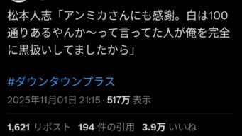 なんG 松本人志「アンミカが白は100通りあると言っていたが俺には完全に黒扱い」
