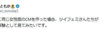 芸スポ 「下品」と物議のカップヌードルCMにアイドル「これと全く同じ女性版のCMを作った場合ツイフェミさんががどう騒ぐか見てみたい」