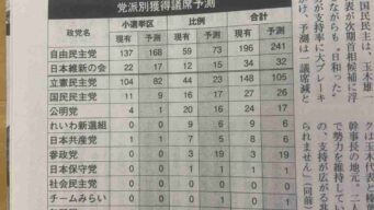エッヂ 【議席予想】文春「自民党は単独過半数取れる、立憲は43議席減る」