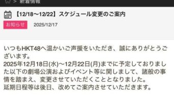 芸スポ 【HKT48】クリスマスイベント辞退、イベントは延期 スケジュール変更